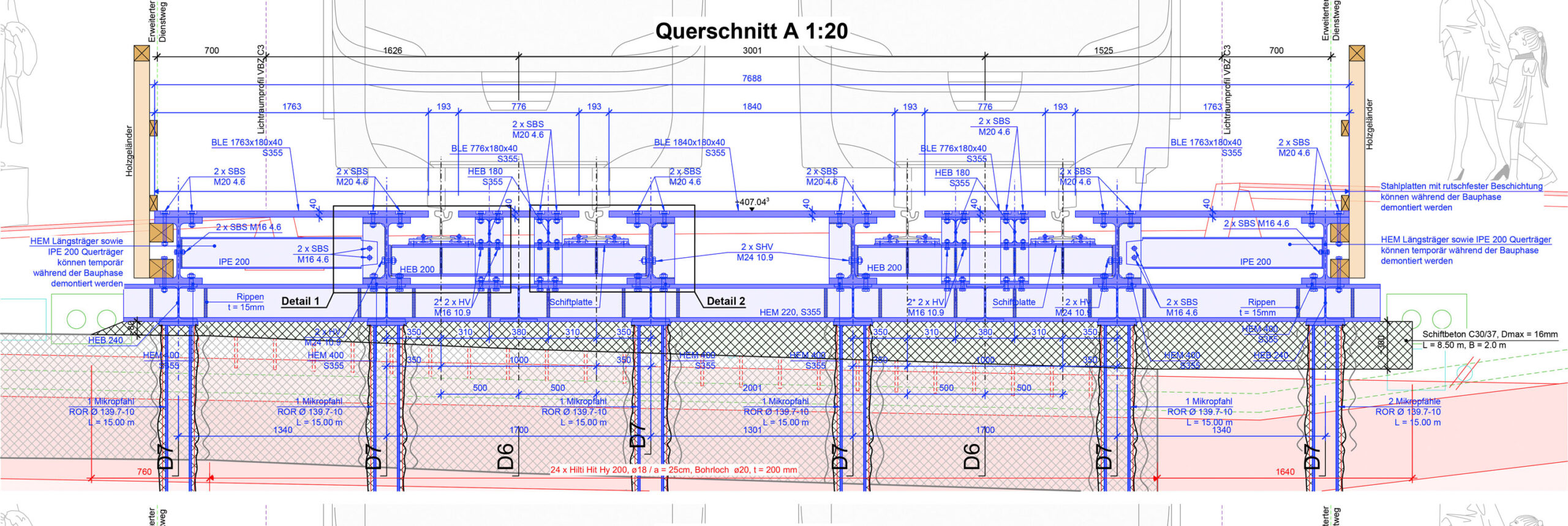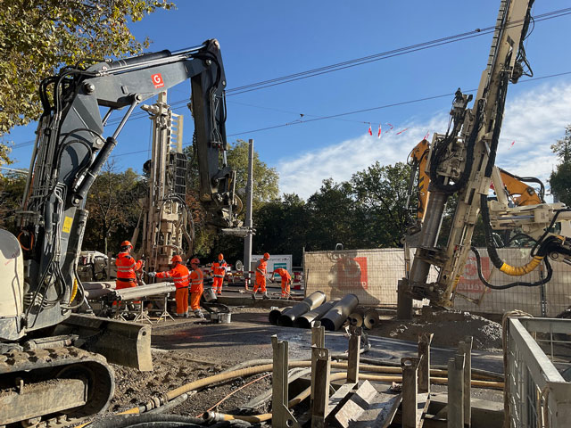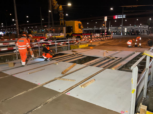 Erstellen von zwei Hilfsbrücken für Tram und Bus im Rahmen des Projekts Velotunnel Sihlquai.